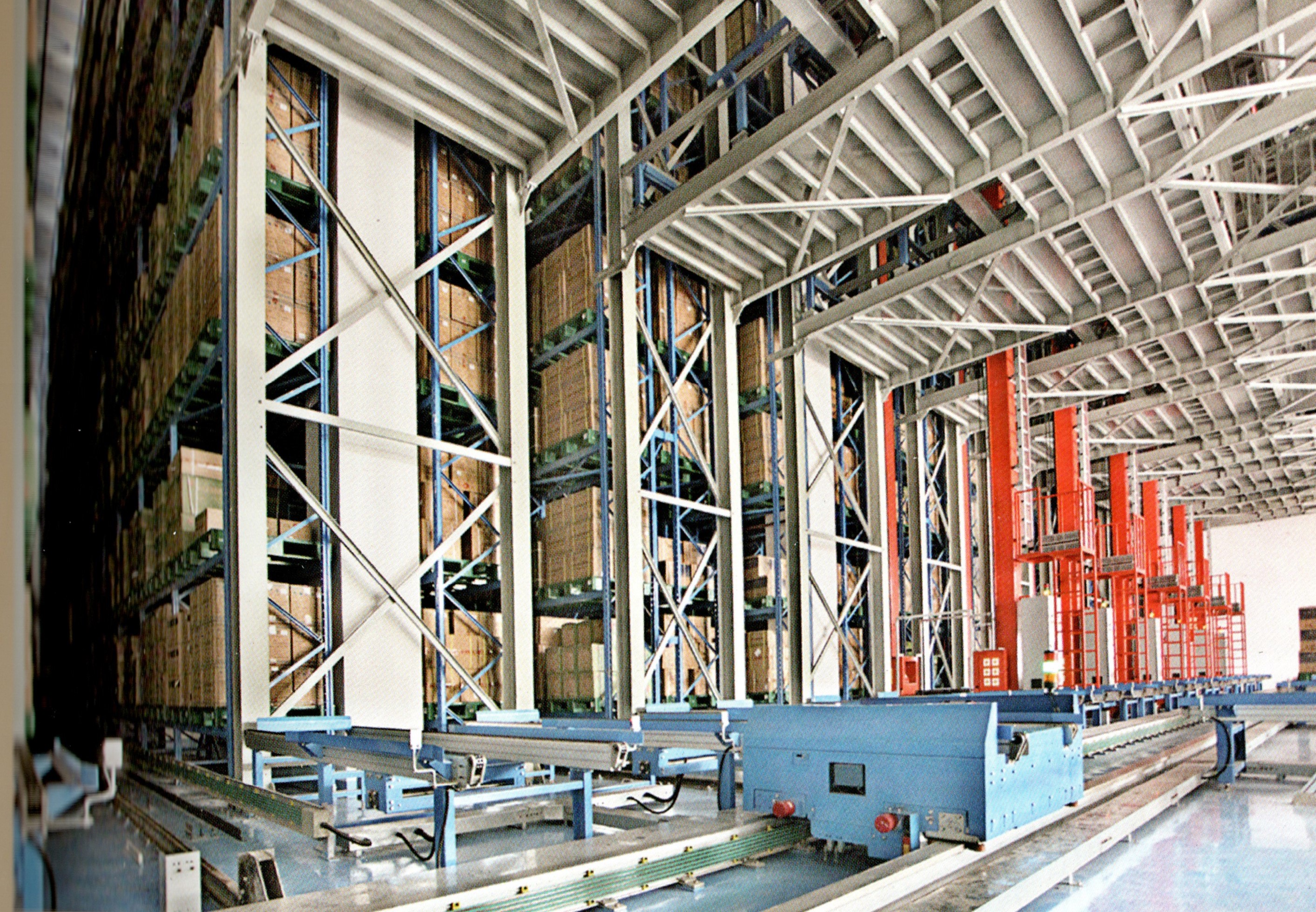 Stacker Cranes: Automated cranes that move on rails within aisles, retrieving pallets from high storage locations.