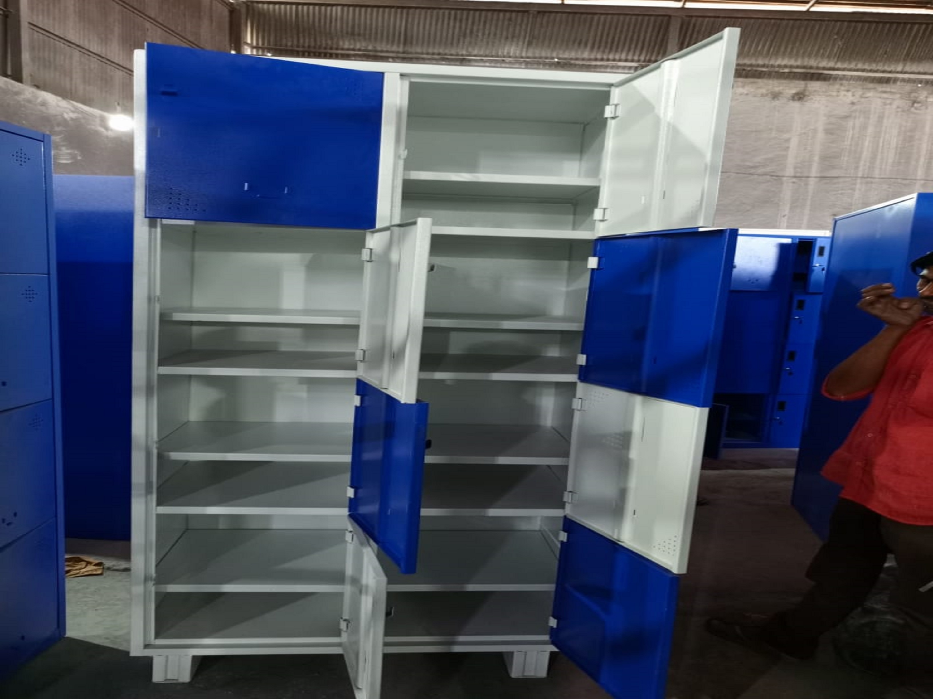 A locker cabinet is a type of storage cabinet that is typically made of epoxy powder coated finish and Stainless-steel finish and has multiple compartments that can be locked. They are often used in schools, workplaces, and other public places to provide secure storage for personal belongings.