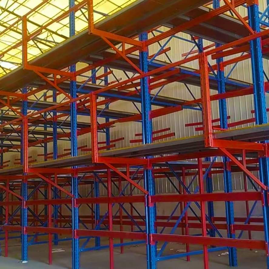 Pallet Racking: Ideal for storing palletized goods on a horizontal plane.