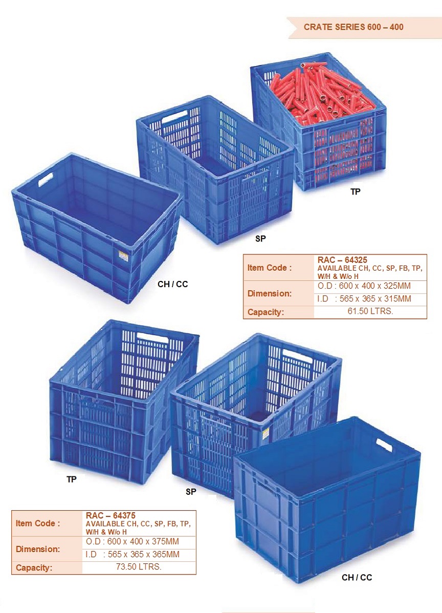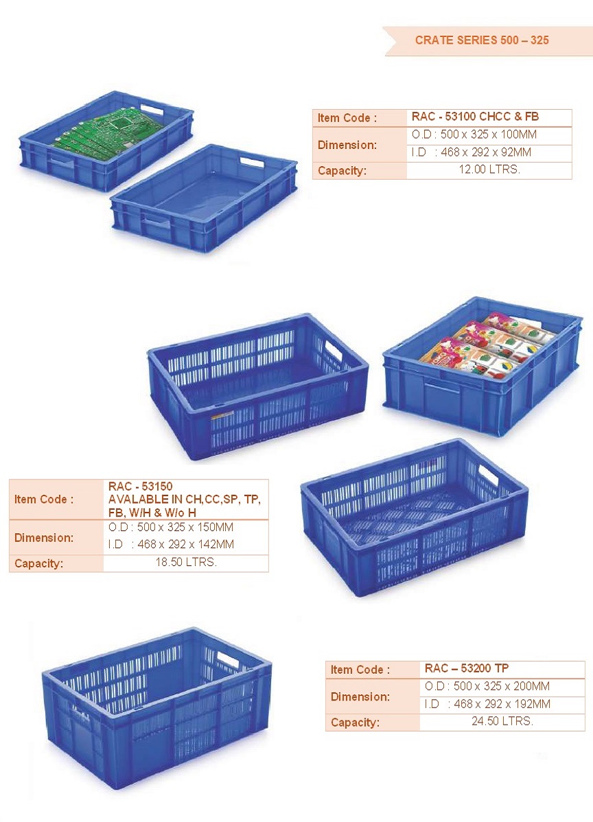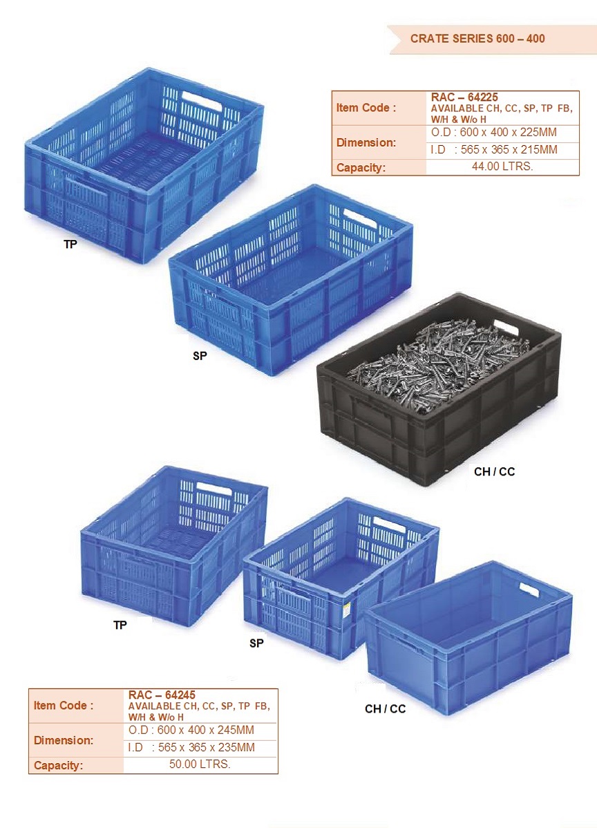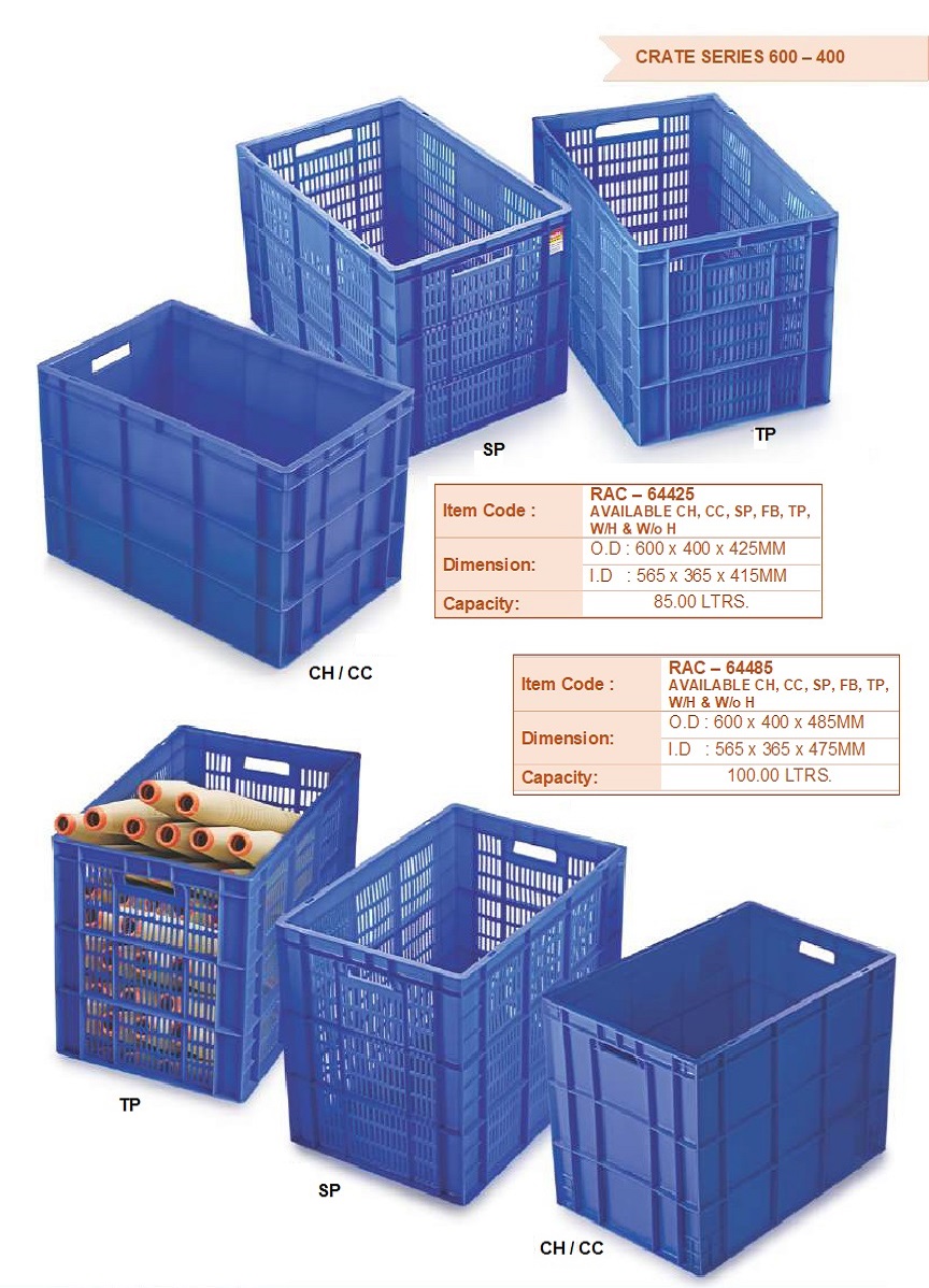 Ergonomic Design: Many crates feature handles or grips, facilitating comfortable carrying and handling, reducing strain and improving user experience.