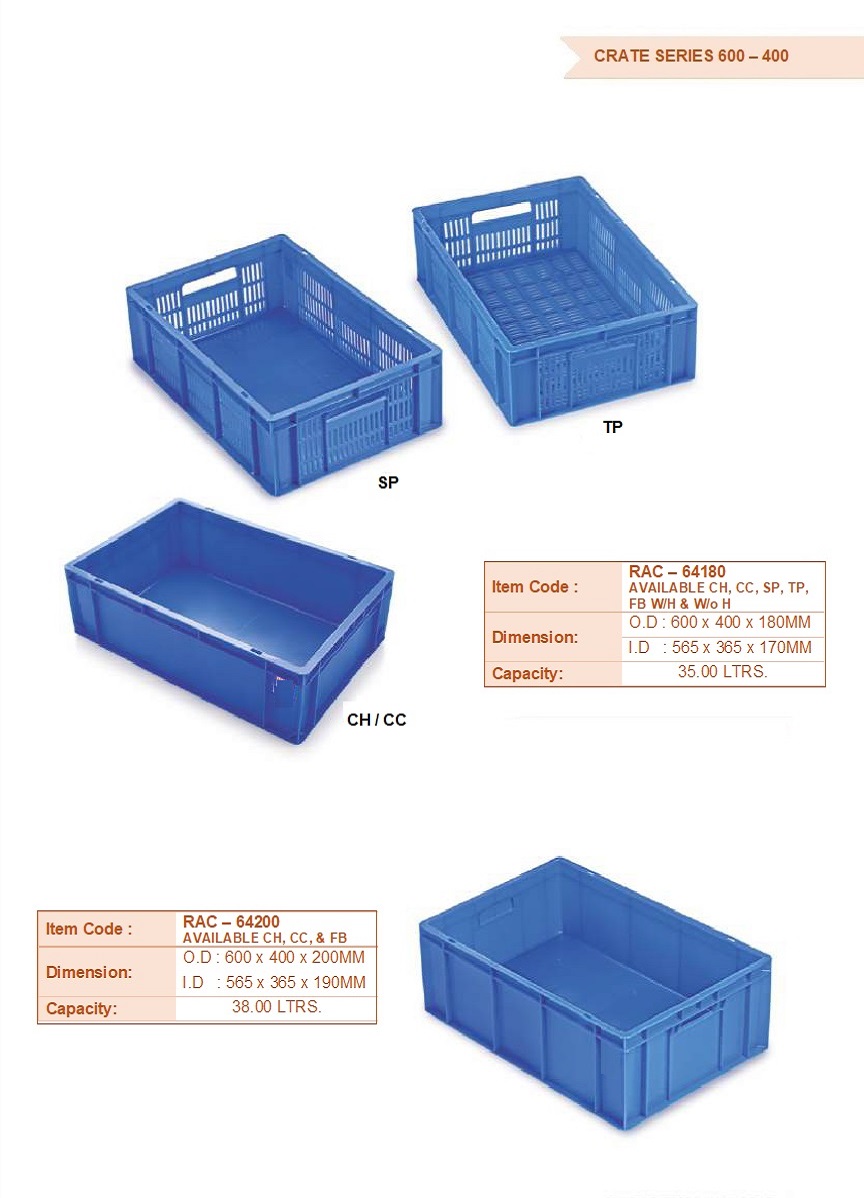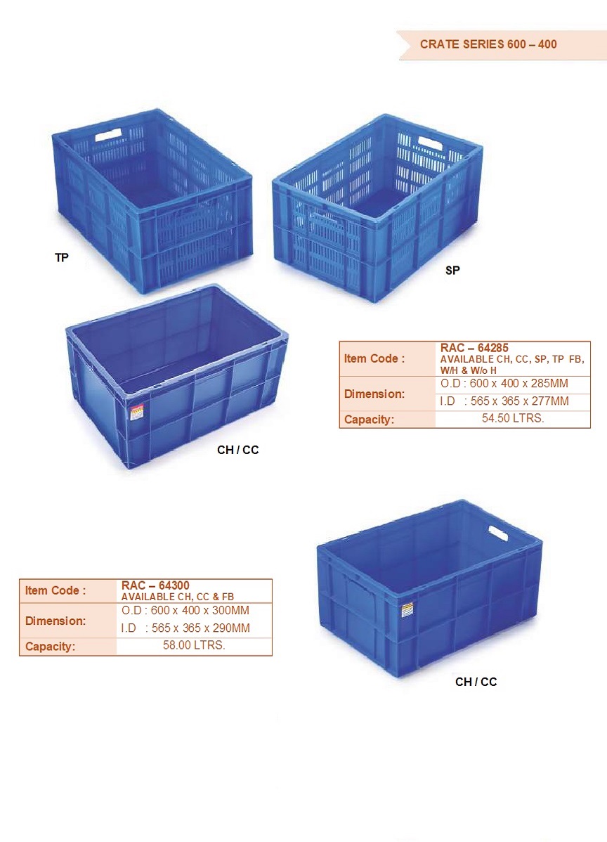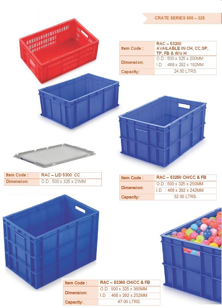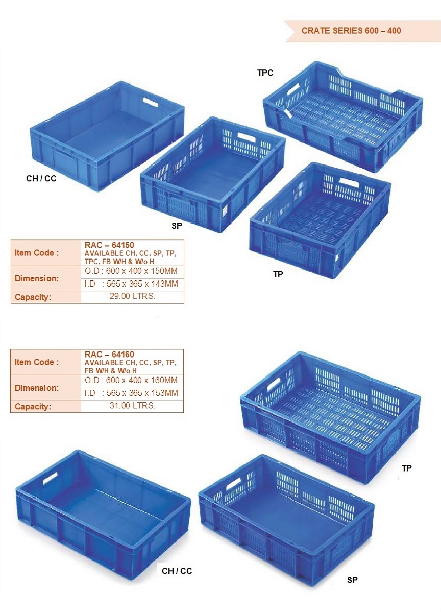 Ergonomic Design: Many crates feature handles or grips, facilitating comfortable carrying and handling, reducing strain and improving user experience.