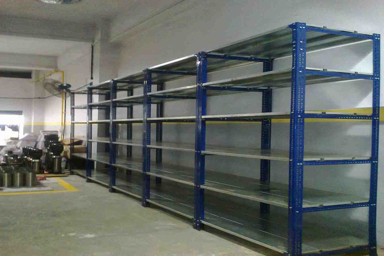 Slotted angle shelving racks are a type of storage solution that is commonly used in a variety of settings, including warehouses, garages, and offices. They are made from steel angles that have slots punched into them at regular intervals. These slots allow for the attachment of shelves, brackets, and other accessories, making it easy to customize the rack to fit the specific needs of the use.